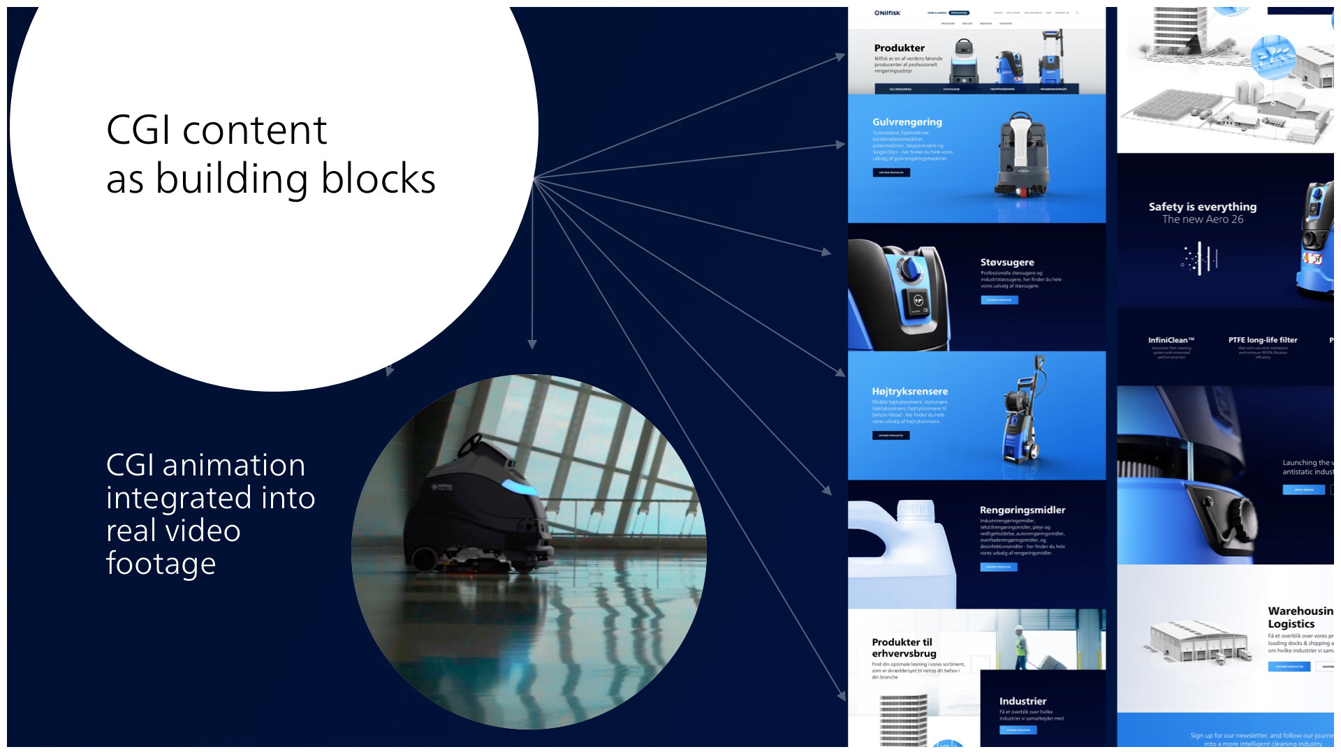 In order to be able work on a more brand focused level, I had to bridge R&D to Marketing and Initiate a new proces for content creation, digitising all products from CAD files to CGI/3D renders to be used for the whole digital eco-system.